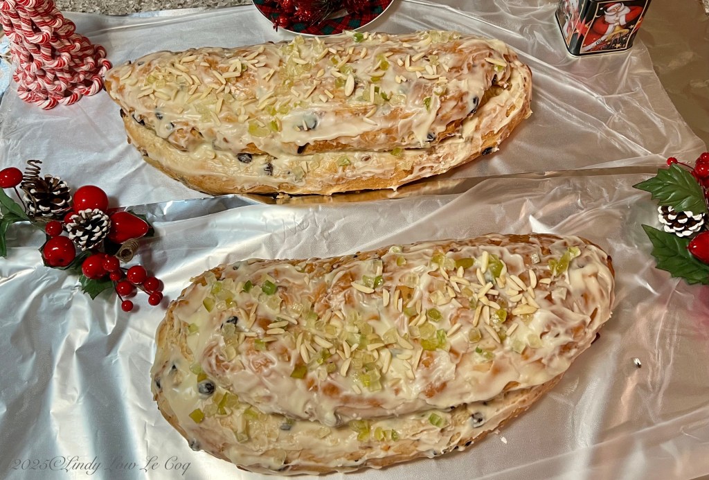 Above, last year’s Christmas Stolen which my mother’s mom made every Christmas during the last decade of her life when she lived with my family in Pullman, WA. After grandma died, mom carried on the tradition, and now I do. This will be a next week project! Tomorrow I will bake Scotch Shortbread using my grand Aunt Lizzie’s recipe. My father’s father came over from Scotland in the 1920’s and year by year brought all of his relatives over to the Spokane, WA area. Lizzie was his dear sister.