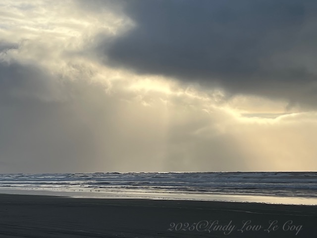 Likely, you have heard the term, “atmospheric river,” which is a weather phenomenon we experience in the Pacific Northwest. In between heavy rains at Long Beach, the beagles took me out for a walk, and this cloud formation struck me as an atmospheric river in the making.