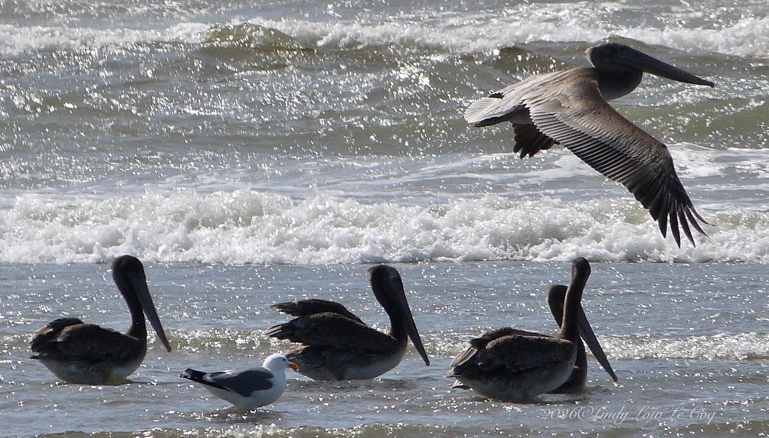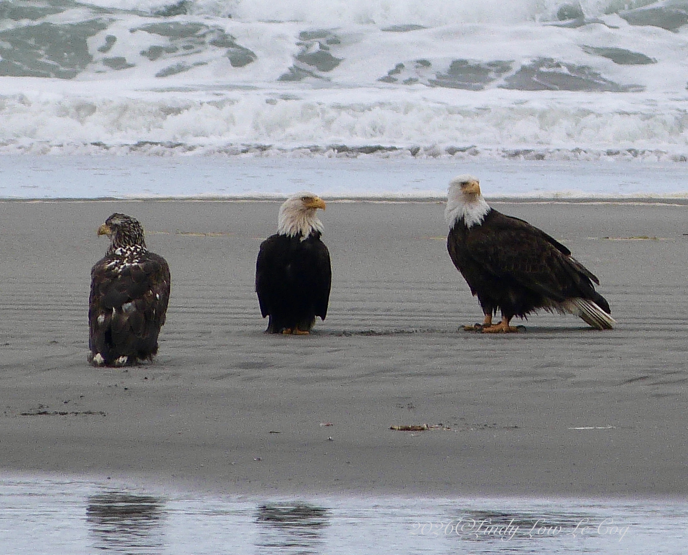 Top – Brown Pelicans, Middle – Immature Bald Eagle, Bottom – Varied Thrush.