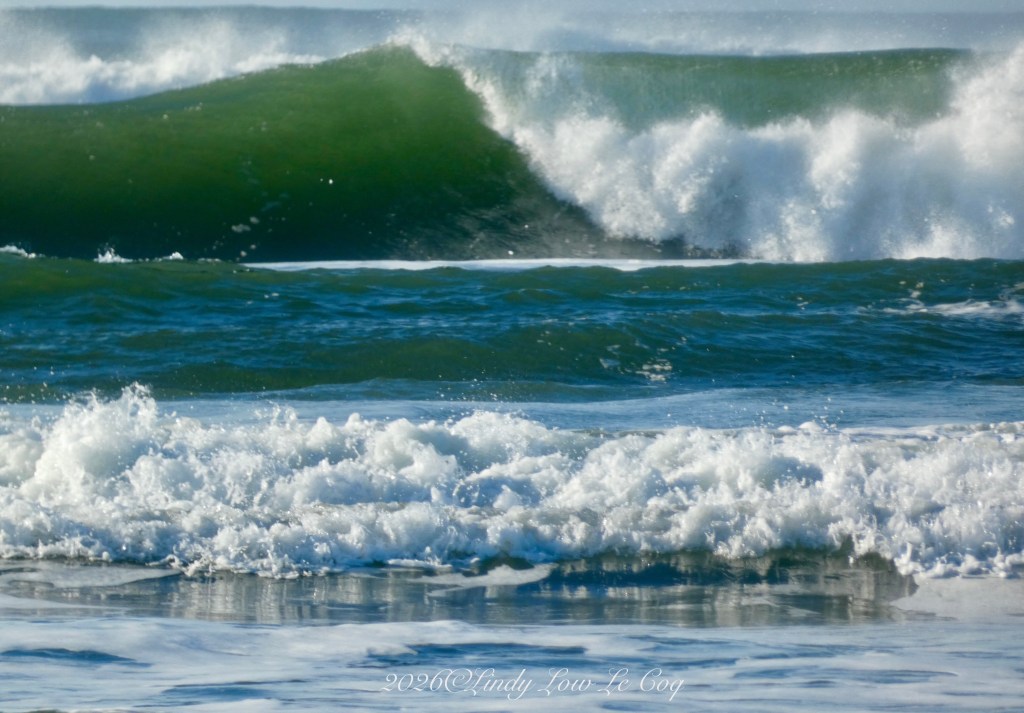 From the deck of my Condominium at Long Beach, WA, the rolling waves are amazing to watch – especially in gale force winds at high tide! I liked this shot, and enjoyed running it through different filters. The “vivid cool” filter intensifies the beauty of the Pacific Ocean’s powerful breakers.