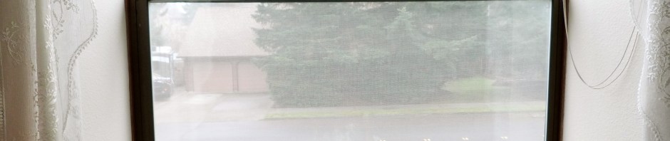 The fence behind this garden was built last fall when my neighbors also had an intrusive old Douglas Fir removed. It had provided shade over this southeast corner of the house and grounds. Knowing the sun will blaze into this window come summer, we are doing our research into solar shades. Looking at and through samples is imperative – even so, it is hard to decide. This will be preferable to the Venetian blinds that need replacing anyway. I’m leaning toward the one on the right.