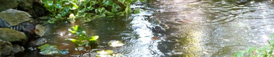 High temperatures here have topped 100°f (38°c) since Tuesday. By late afternoon yesterday, as the usual marine westerly blew in, trees were withering in hot wind, shrubs wilting, birds had sheltered and the koi were seeking the bottom of my fairly shallow pond. Everything needed cooling moisture, so I set up a sprinkler that sprayed a fine shower over the corner around the pond.