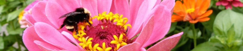 American Goldfinches flock to my feeders in spring. The males bless me with their vivid yellow feathers at breeding time. During winter, Lesser Goldfinch males are she showy ones. Zinnia and dahlia’s attract bees all summer long.