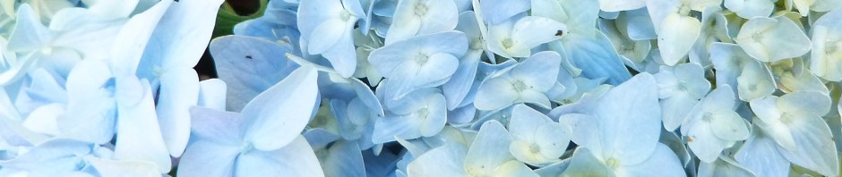 I love having a big vase of hydrangea with their wonderful blue color on the deck table.