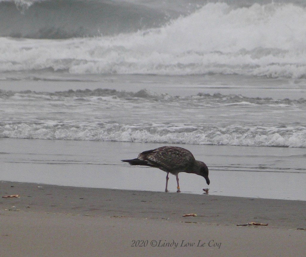 Juvenile Western Gull (Larus Occidentals) scavenges the shoreline, Long Beach, WA.