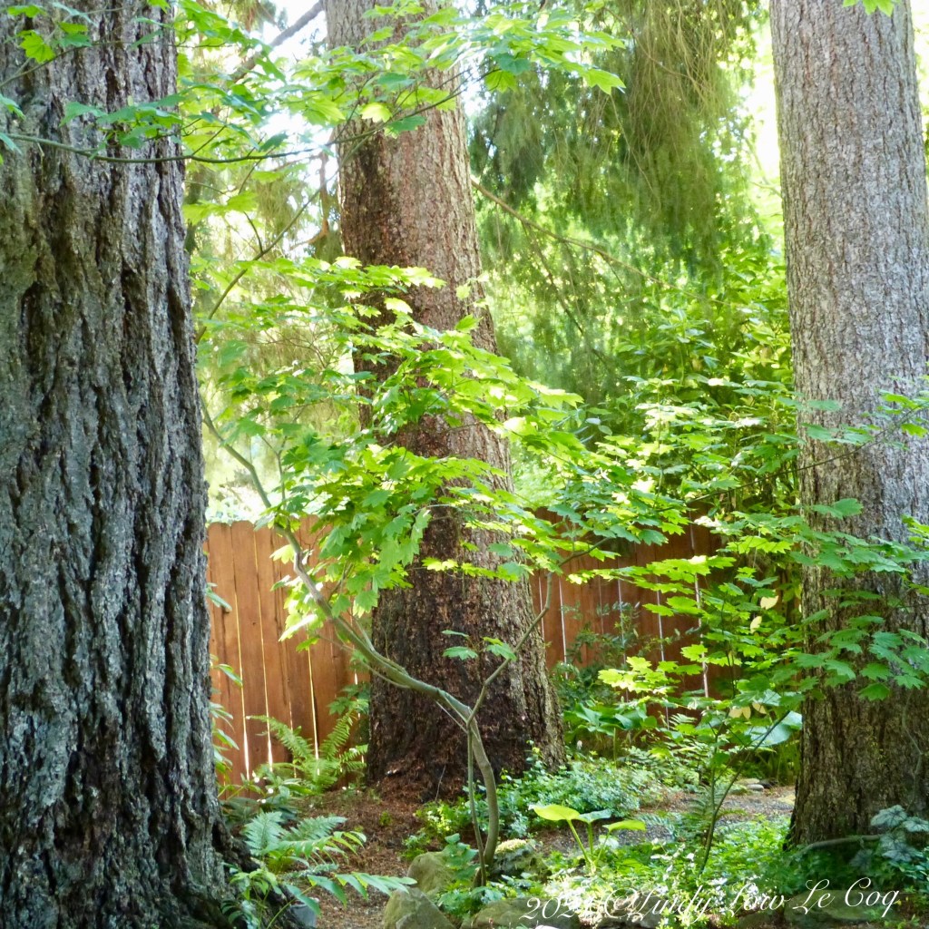 On my quarter acre grounds are several mature Douglas fir and other evergreen trees. It is a pleasure to live with them and steward the grounds around them.