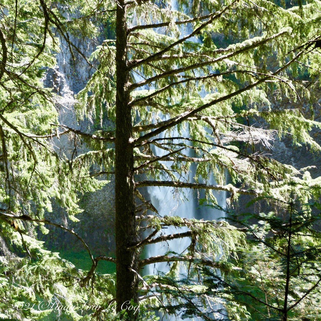 This past week I have featured several photos of Salt Creek Falls on Willamette Pass in Oregon, USA. Here it is again, seen through the limbs of large evergreen trees.