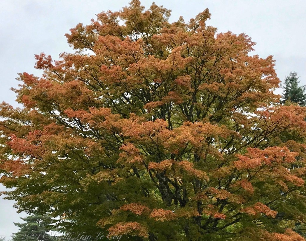 Ornamental maple trees are turning on their autumn razzle-dazzle all over the Pacific Northwest, as we greet October with a few days of welcome rain.