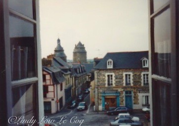Jean-François’ and Catherine’s three story home in Châteaugiron was built of stone in the middle ages. Walls are about two feet thick as you can see in this photo looking out the window of our third floor bedroom, and below of the entrance to their home and Jean-François’ medical practice.
