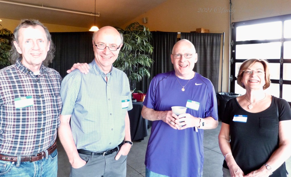 When my father passed away in 2016, I took it upon myself to locate my long-lost cousin, Duncan (center left). He and I were the same age and had been close when we were in grade school. Thanks to linked-in we reconnected. What a delight it was for my sister Diana (center right) and I to meet up with him at Crescent Creek, Oregon. Must say we did a fair amount of toasting to celebrate this reunion!
