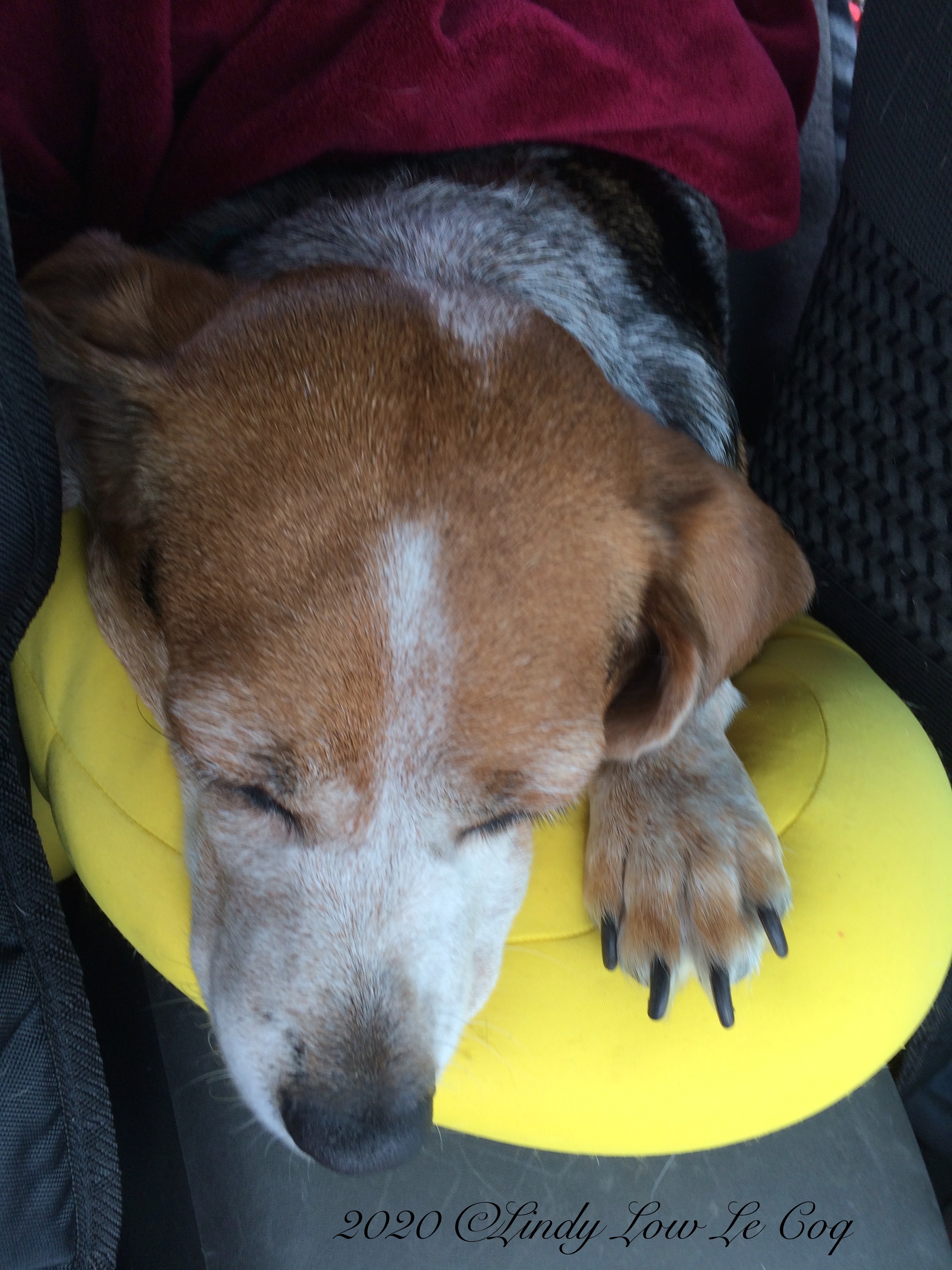 Most of my traveling in the past fifteen years has been by automobile and with a dog. So, in response to Amy’s challenge this week, I offer what I have learned to make traveling with a dog comfortable and fun for all involved. Before leaving home, make sure your vehicle is in top running condition, tires are inflated properly, and gas tank is full. Keep 1 leash per dog, in the vehicle at all times, along with a supply of poop bags, small water cups and bottles of fresh water. Dogs should always have their id tags on, whether on a collar or harness. Pack their food, treats and meds in daily portion packets. Bring at least one of their favorite toys, their pillow bed, and two or more of their blankets, so wherever you stay will feel more like home.