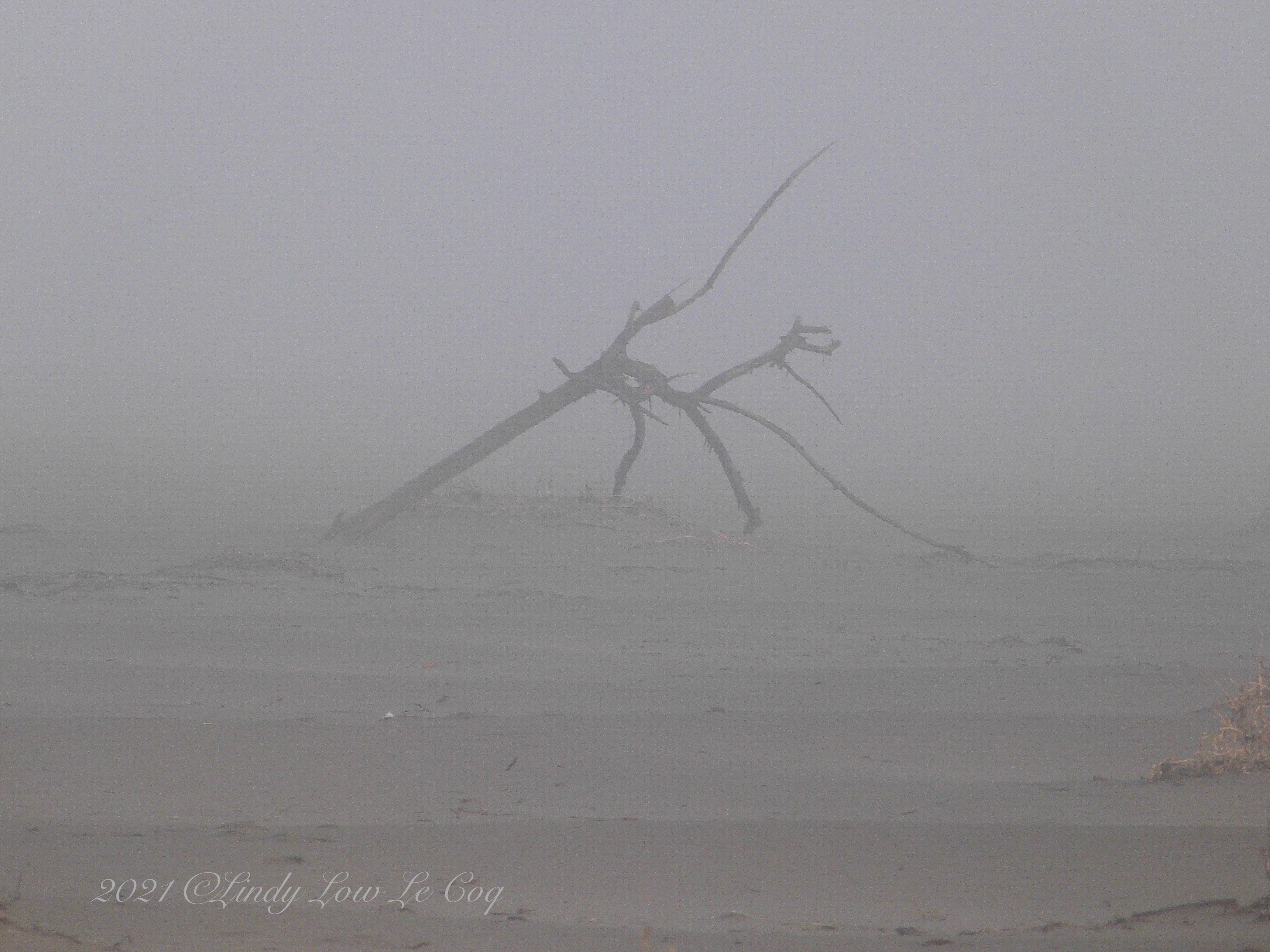 Fog is one of my favorite special effects with photography. Just about any time of year, fog and mist are common along the Long Beach Peninsula. I featured the first photo below for a Wordless Wednesday post last month. It is so quiet, it’s worth repeating! The Brown Pelicans in fog and a branch with dancing grace are also repeats that bear being seen again.