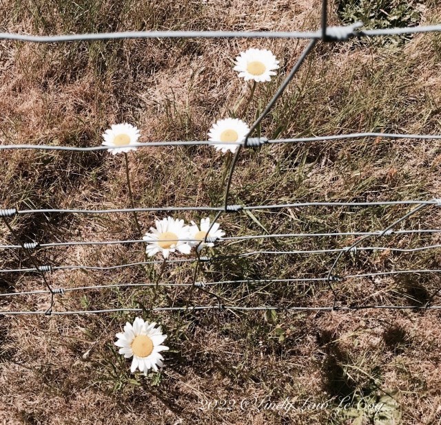 Juxtaposing nature-made with man-made forms is another of my particular fetishes. These pretty little Oxeye Daisies reaching to the sun next to a hogwire fence is a prime example!