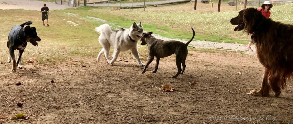 Standing by the side of the highway, I just held my camera steady and snapped a series of shots as these bicyclists sped on by. Below, at the dog park, the movement of the dog bodies tells the whole story!
