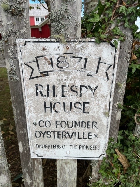 “For generations before the pioneer settlers arrived, Chinook Indians gathered oysters in this part of Willapa Bay and camped in the area that is now Oysterville. The first white settlers here were Robert Hamilton Espy and Isaac Alonzo Clark. Chief Klickeas showed them reef upon reef of tiny native oysters that grew on the shallow bay bottom. Espy and Clark marketed the bivalves in gold-rich, oyster-hungry San Francisco. In no time, Oysterville became a rowdy, lusty boomtown. By 1855 its population and importance were such that it became the seat of Pacific County, Washington Territory. The town had many firsts – a school, college, newspaper, and finally, in 1872, a church – First Methodist.” (Oysterville Restoration Foundation/ORF)