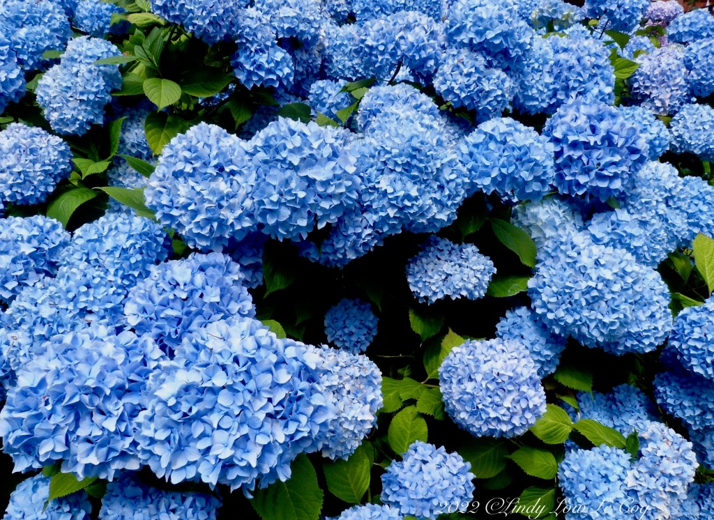 Then comes summer with a parade of beauties to charm my soul! Mop head Hydrangea are among the happiest blossoms at this time, all crowding to catch the sunlight and emit their radiant blue hues.