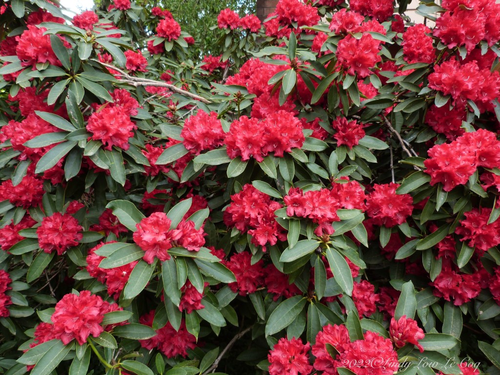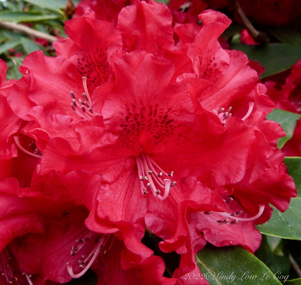 Rhododendron is native in the Pacific Northwest and their evergreen foliage provides shade and shelter for birds year round. These I planted thirty-five years ago and they have grown into a mature base planting at our home. Though their bright blossoms fade sooner than I want, they are always a show stopper!
