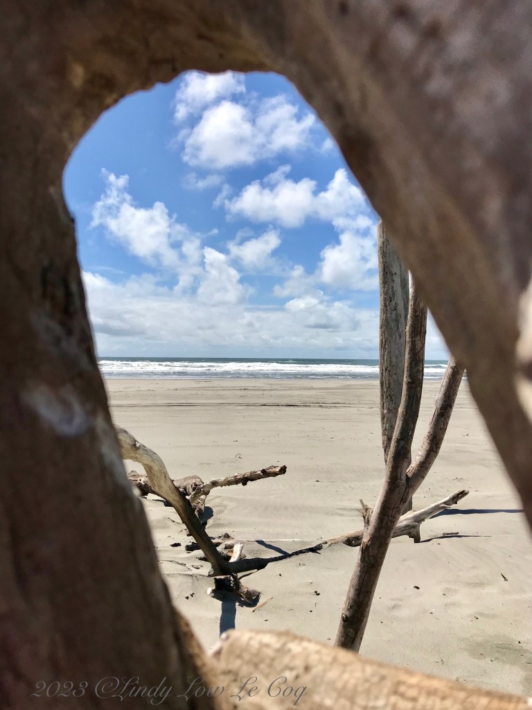 I’ll close with another favorite perspective. Donna has an example of this technique in her introduction of this week’s challenge. Below we see a sandy beach leading to the ocean shore and cloudy sky above framed by a large driftwood tree stump. I am so looking forward to taking shots like this with my new camera! I’m sure the photos will be much sharper focused. Maybe I’ll do a compare/contrast for a Wordless Wednesday – stay tuned!