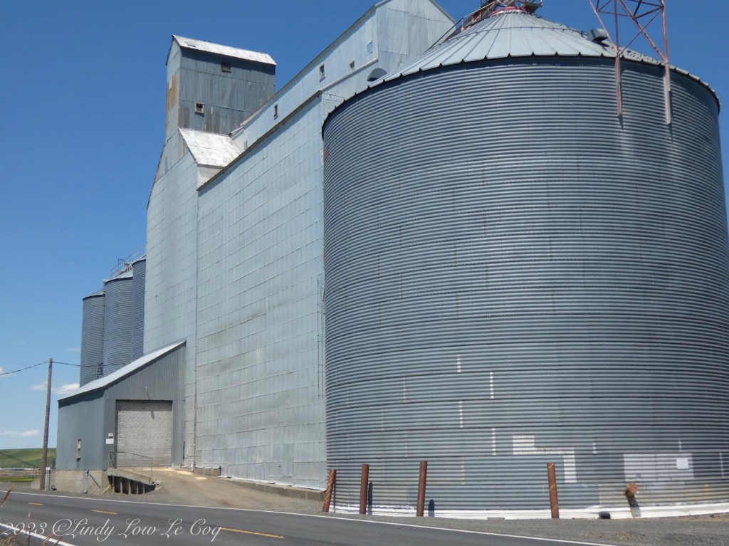 The McCoy grain elevator near Oakesdale, is a fine example of contemporary agricultural structures throughout the region. Grain (usually wheat) is stored in these huge containers and then transported by rail to market. Oakesdale, population 412.