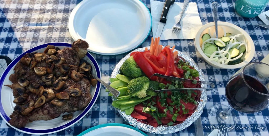 Last week I shared the camp kitchen with my sister at our annual fishing get away in central Oregon. Diana and I make sure we have delicious dinners daily. We plan our menus in advance, decide who is responsible for what, and delight in sumptuous spreads every evening!
