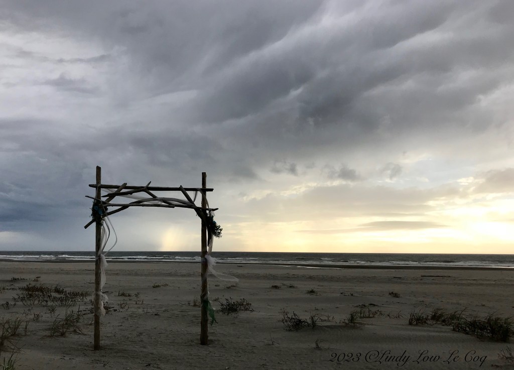 3rd image is fantastic! Is it a wedding/ceremony arch on the beach? The dark clouds and the arch together remind the couple to embrace the storm together.