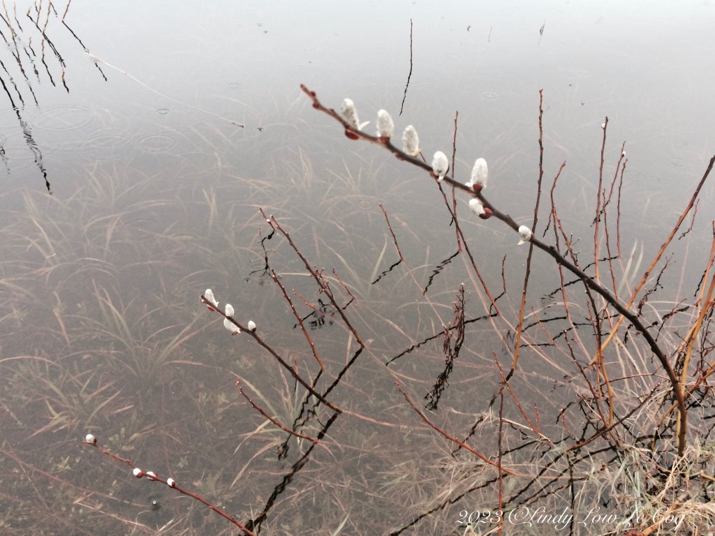 Willow catkins along the edge of a marsh pond are a quiet statement of spring re-emerging.
