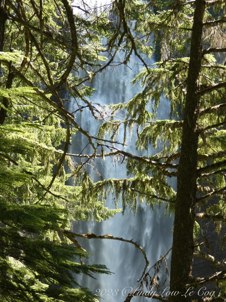 Wonderful framing photo selections, Lindy! The landscape is breathtaking, and I love how you capture the waterfalls through these beautiful native evergreens! The cloudscape is fascinating. Lovely bird capture. 🙂
