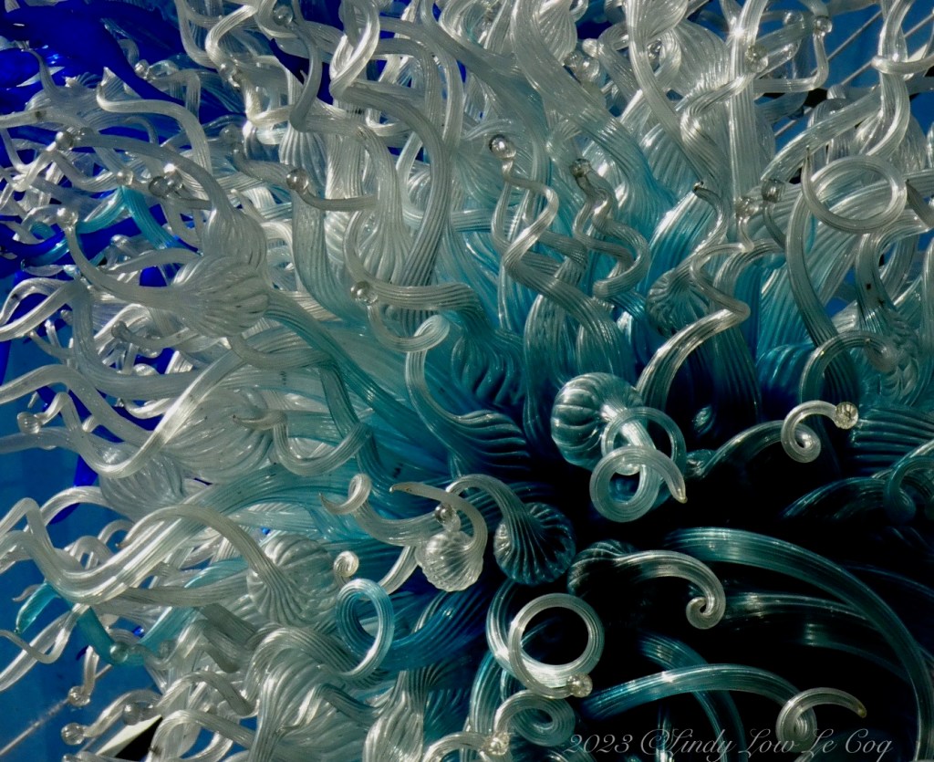 A showing of Chihuly in the Garden, at the Missouri Botanical Gardens in St. Louis, was a photographers feast. I featured the twisty blue chandelier in post #276. After playing with the photo in editing, this image was my favorite. It made a lovely photo-to-canvas for my sister’s home in St. Louis!
