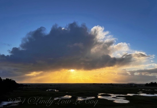 Sunsets are different every time – even when snapped from the same vantage point. This one is from a month ago, when the clouds and rainstorms were frequently upon us.