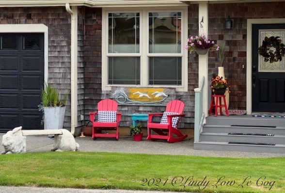 When I saw Tina’s challenge for this week, I first thought I whould go out and about to feature some of the dramatic and special sights here on the Long Beach Peninsula. Then, I decided to follow her lead and show what I see when Max and Daisy take me for our morning and afternoon walks. The Breakers condominiums are near a residential neighborhood where we take our morning constitutional.