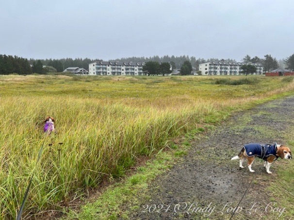 Rain or shine, in the early afternoon the beagles get restless, so out we go for an afternoon promenade. Starting at the parking lot entry to the Discovery Trail, we peruse the trails that take us to the Pacific Ocean shoreline.