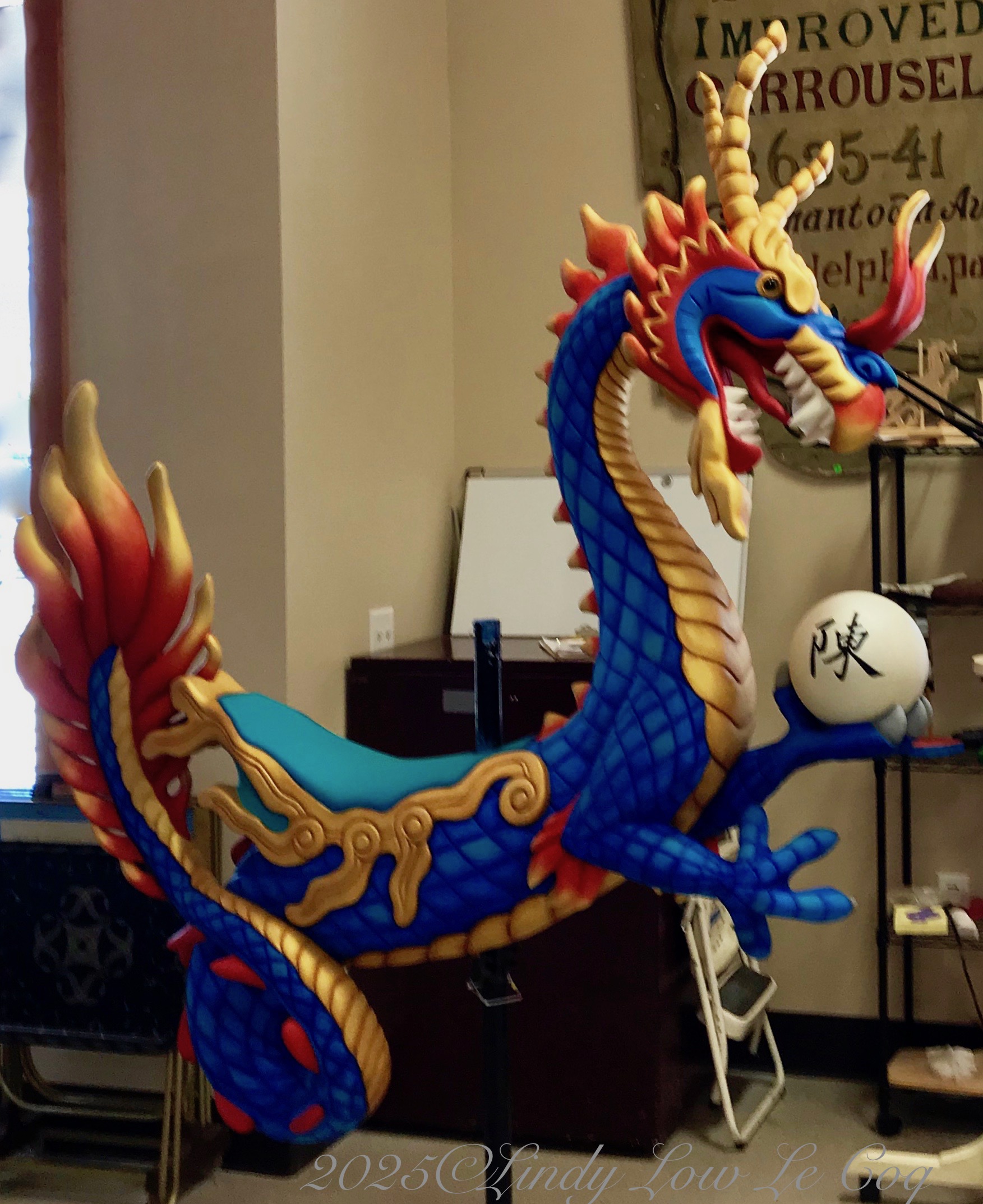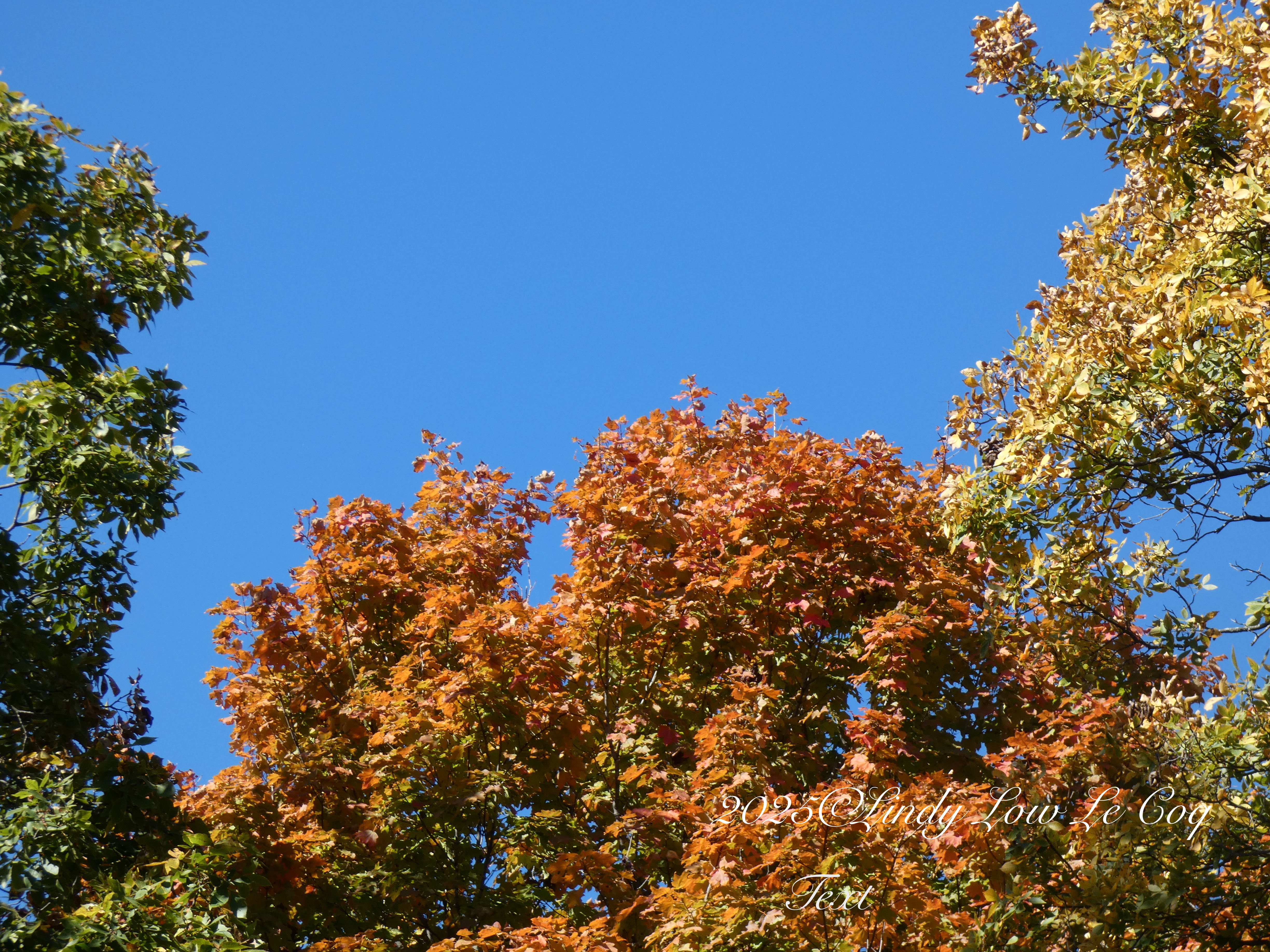 Blue and Orange create a fierce dynamic on Yun Hsiang, a dragon carousel feature which was in its last phases of production when I snapped this photo. By now it is one of the rides available to visitors of the Albany Historic Carousel and Museum, Albany, Oregon. Brilliant autumn leaves silhouetted upon a bright blue sky always takes my breath away!
