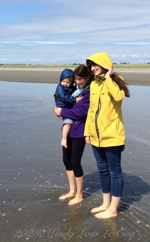 Purple and Yellow. Another match made of light! Above my sister Lori holds her grandson Micah, while her daughter Molly stands beside her at Long Beach, WA. It was 2017. We were initiating young Micah to the wonder of cold ocean water, fresh clean breezes and unconditional love.