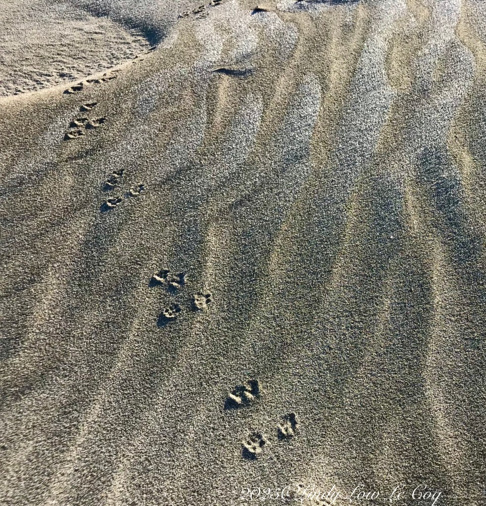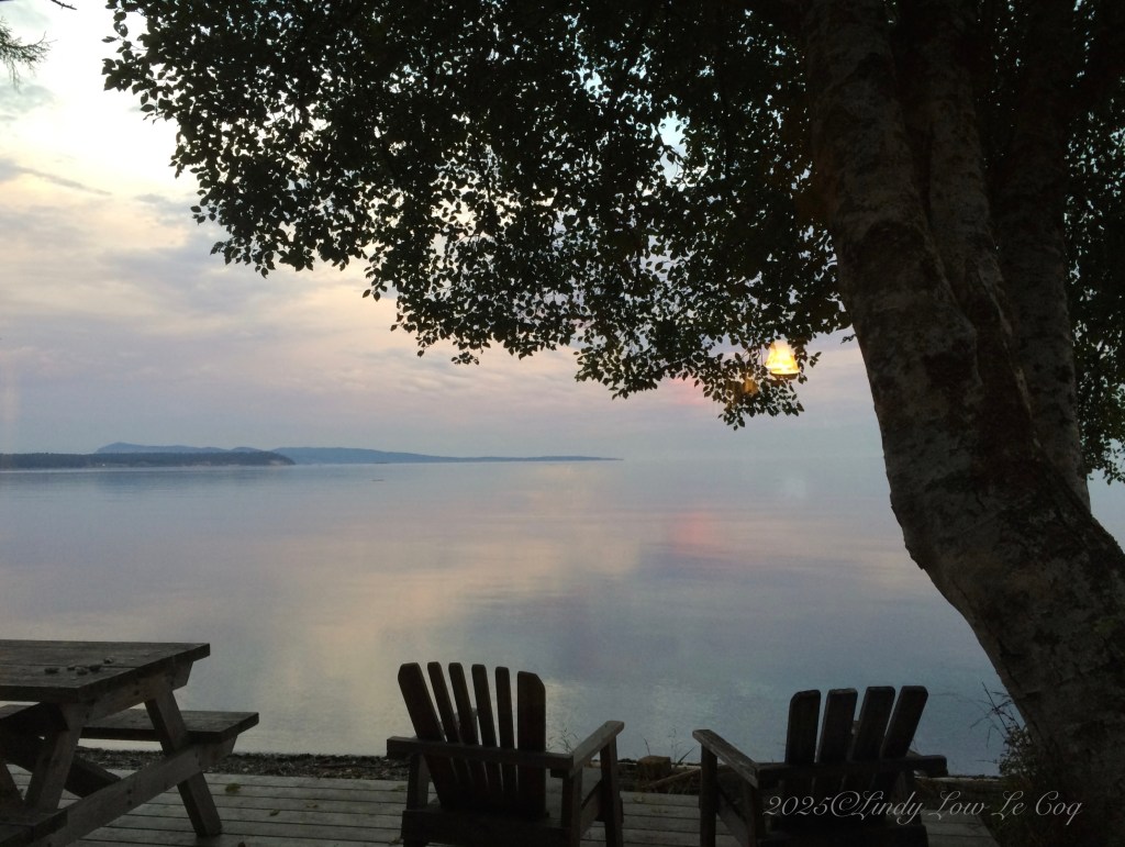 Above, a very low tide, fog in the distance, cirrus clouds streaming above and a few people along the shoreline, create a quiet dreamscape at Long Beach, WA. Below, early morning mist, tinged with pink traces of dawn across the meadow is enchanting.