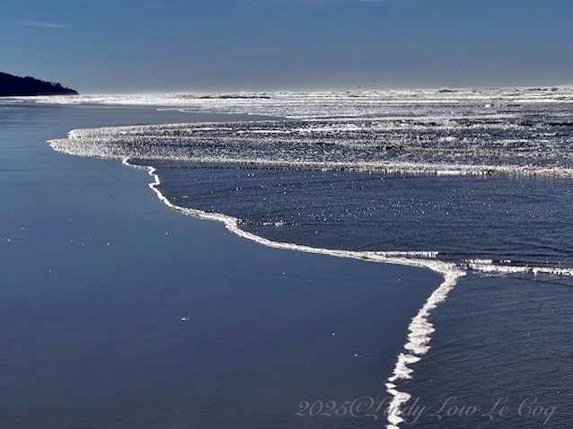 Sunsets at Long Beach, WA often are quite dramatic, filled with action and bright tones. This one is a favorite because of the suffused pastel colors radiating out on small fluffy cumulus clouds.
