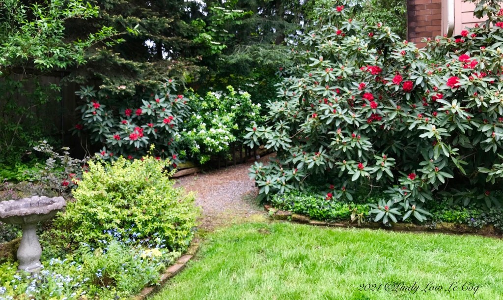 Amy invites us to walk through gardens this week. Though I have enjoyed other public gardens, the one I love most is the one I have created over the thirty plus years I’ve lived at my home in Vancouver, WA. Here are a few highlights.
